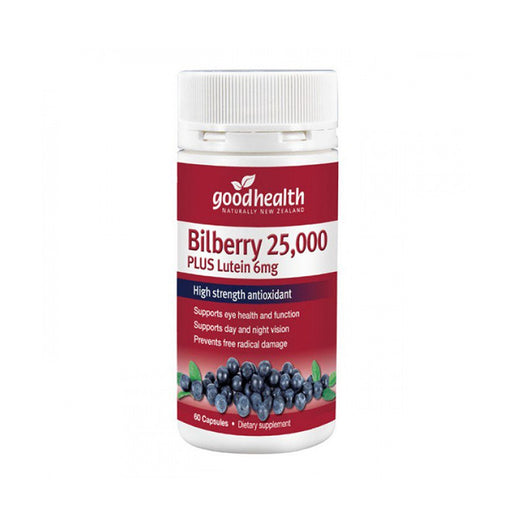 View full detailsGood Health Bilberry 25,000mg Plus Lutein 6mg 60 Capsules